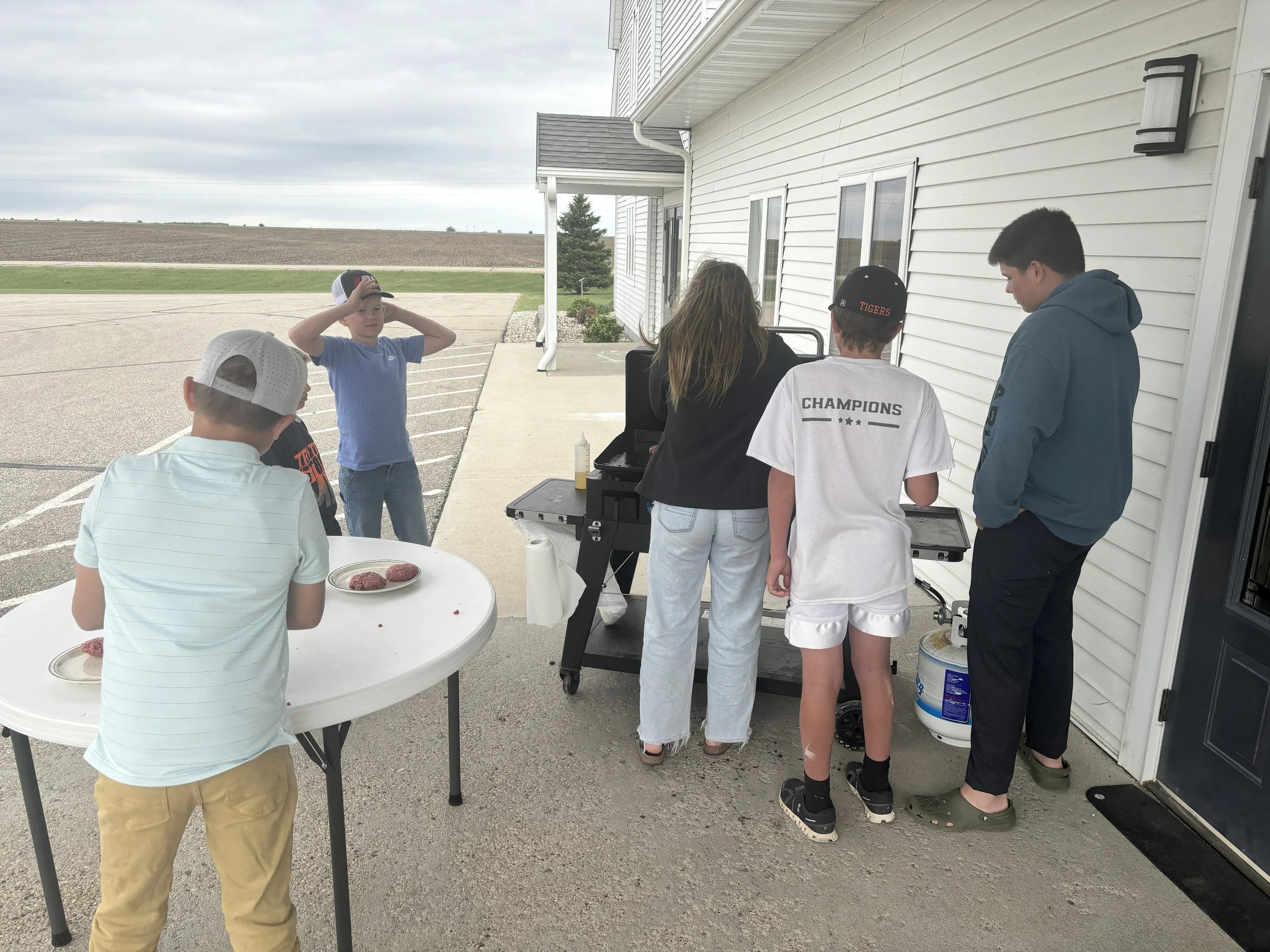 From third grade to ninth grade - they all made lunch together, including smash burgers on the Blackstone!